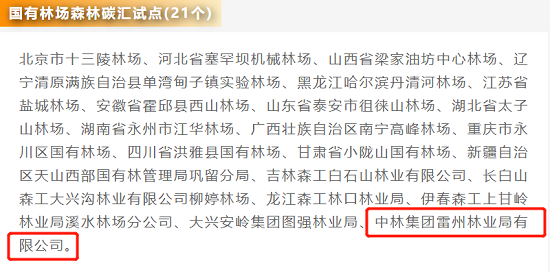 国有林场森林碳汇试点(21个)