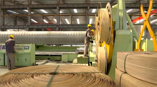 竹缠绕复合材料是以竹子为基材、以水溶性氨基类树脂为胶粘剂,采用缠绕工艺加工成型的一种环保生态材料,质量轻、拉伸强度高、韧性好,具有资源可再生及综合利用、生产过程节能环保、产品可固碳储碳等优势,也是中林集团全面贯彻国家“双碳”战略部署的重要成果之一。