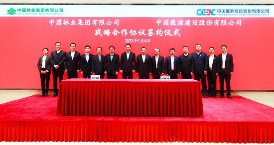 1月4日,中国林业集团有限公司与中国能源建设集团有限公司在京签署战略合作协议。中林集团党委书记、董事长余红辉,中国能建党委书记、董事长宋海良出席并见证签约。中林集团党委委员、副总经理黄其正,中国能建党委常委、副总经理吴云分别代表双方签署合作协议。
