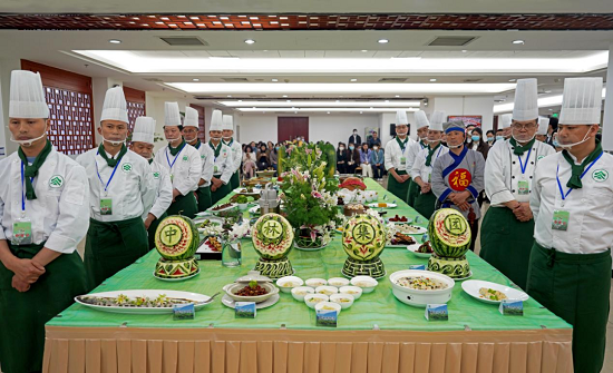 设在集团食堂的品鉴活动现场洋溢着幸福祥和的氛围,来自集团公司旗下的北京千岛湖鱼味馆、歙县披云山庄有限公司、晏徽宴(北京)餐饮管理有限公司、浙江千岛湖鱼味馆有限公司、黄山市华山徽宴酒店文化有限公司五个“身怀绝技”的厨师团队为大家呈现了一道道用“中林好食材”精心准备的珍馐佳肴。