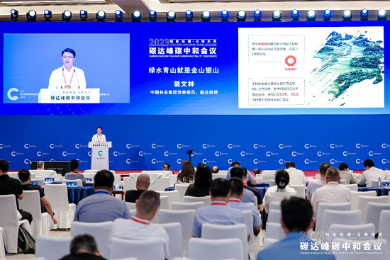 在2023碳达峰碳中和会议上,中国气候变化事务特使解振华,博鳌亚洲论坛原秘书长、原国家外经贸部副部长龙永图等通过现场或视频方式出席论坛并致辞。中林集团党委委员、副总经理翁文林应邀参会,并作题为《绿水青山就是金山银山》的主旨演讲。